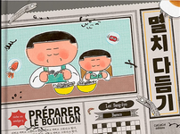 On connait peu en France la cuisine coréenne. Cet album est l’occasion de découvrir un classique, le bouillon de nouilles aux anchois, mais aussi un poème en coréen – heureusement traduit – qui clôt l’ouvrage.  Mais on est bien loin du livre de cuisine traditionnel !